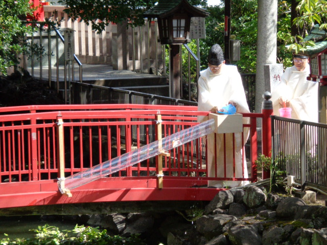 こちらは中秋祭での放生会の様子です。放生会とは捕らえた魚や鳥獣を自然に放し殺生を戒める儀式です。