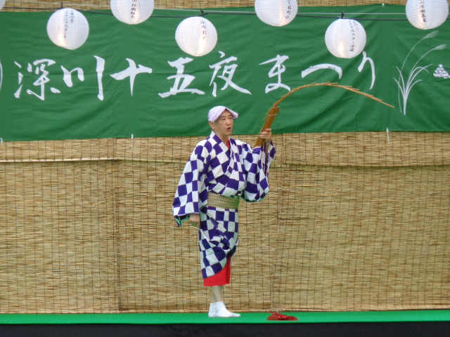 10月3日から深川十五夜まつりが開催されます。富岡八幡宮の舞台では神楽や三味線など様々な催しが行われます。