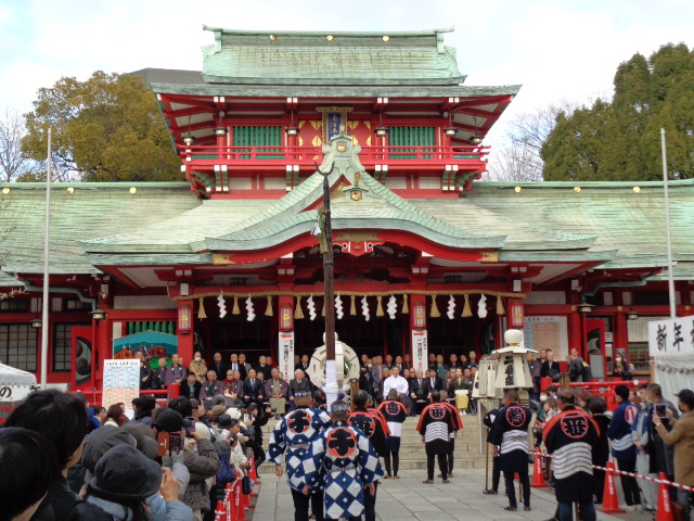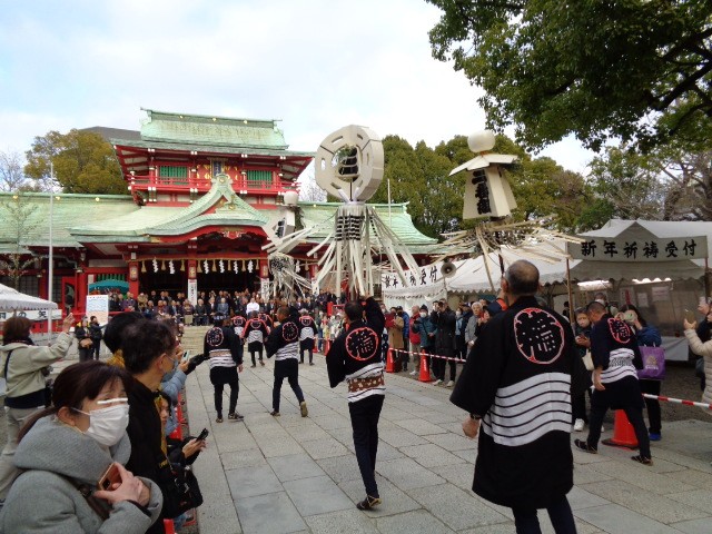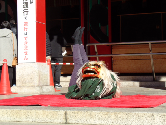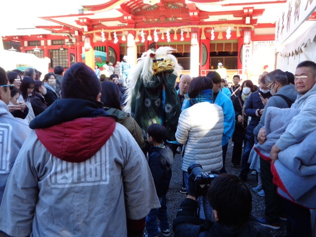 3日は御本殿前で獅子舞が奉納されました。昨晩の雪の影響もなく、まさにお正月の風物詩です。獅子舞がコミカルな動きで盛り上げます。