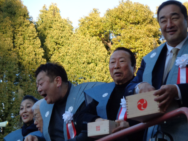富岡八幡宮の案内を見ると、本年の主なゲストは、大関 安青錦、石倉三郎さん、テリー伊藤さん、嘉門タツオさん、山田邦子さん、日向薫さん、岩崎良美さん、立川談笑さん、山井綱雄さん、山田隆夫さん。お馴染みの方がお元気そうで何よりでした。この後は家に帰って、頂いた富久福豆(ふくふくまめ)で豆まきをします。