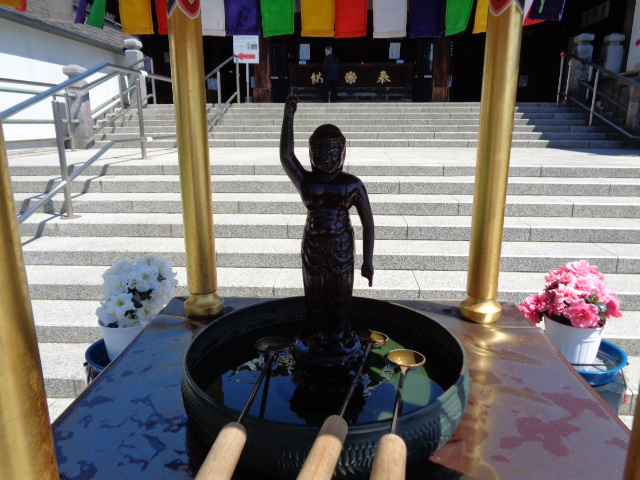本日は釈尊降誕会、お釈迦さまのお誕生日です。深川不動堂にお参りに行きました。釈尊降誕会は別名「花祭り」とも云われ、鮮やかなお花で囲まれています。小さいひしゃくで誕生仏に甘茶をかけて参拝します。