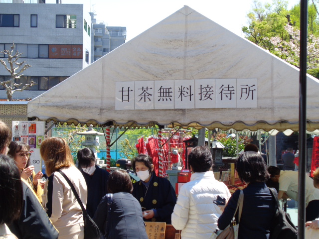 甘茶の接待がありました。甘茶をいただくと無病息災で過ごせると云われています。なお、江戸時代は目病に効くとされていました。